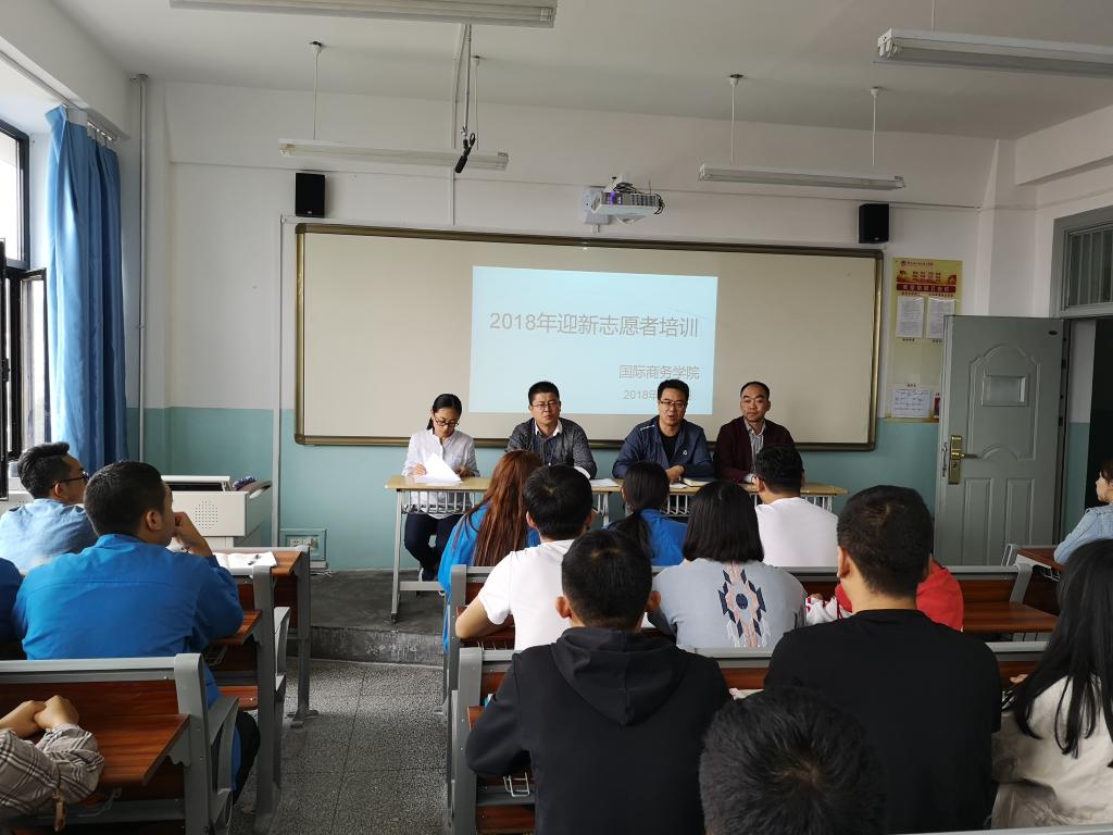 为了确保2018级新生入学报到工作顺利、安全、有序进行,国际商务学院于9月5日在东主教705教室召开了2018年迎新志愿者培训会。国际商务学院党总支书记刘江、院办副主任孙永建、辅导员及全体志愿者参加了迎新培训会。