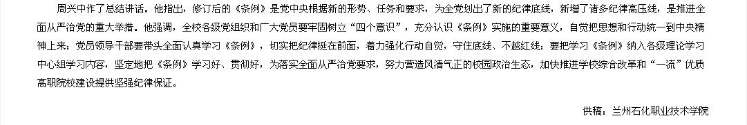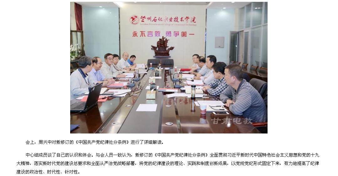 【省教育厅网】兰州石化职业技术学院部署学习贯彻新修订的《中国共产党纪律处分条例》