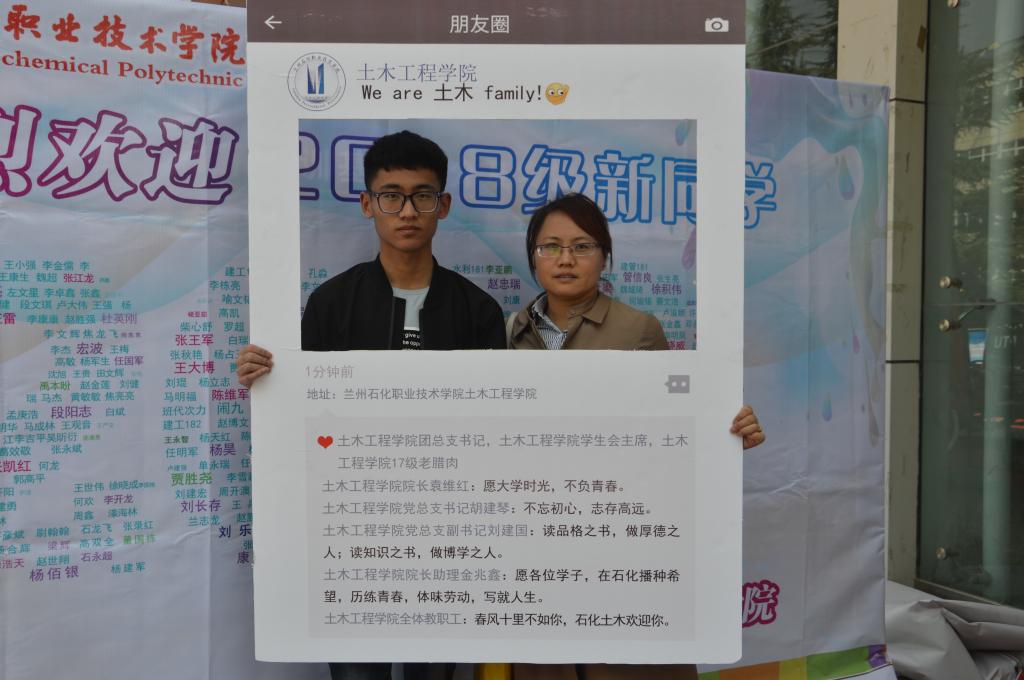 此外学院还专门设立了签名墙及模拟朋友圈等。有我们以新生名单设计出的特殊“2018”,有土木工程学院领导对同学们的寄语与祝福,同时,让学生与家长进行合影,来见证孩子刚步入大学校园的这一标志性时刻,体现着土木工程学院对新生的用心以及期待。