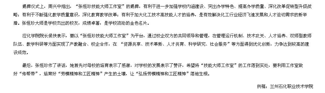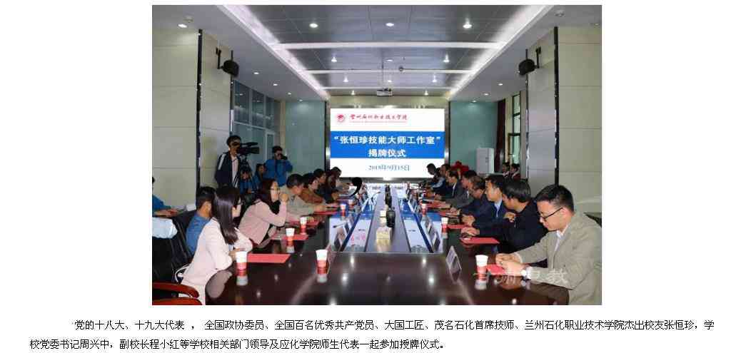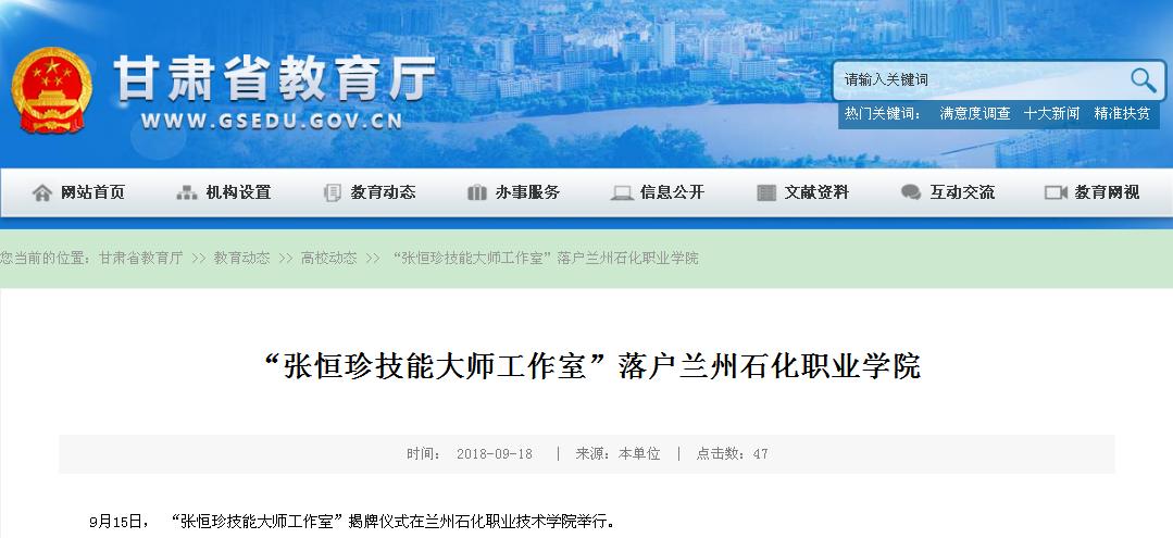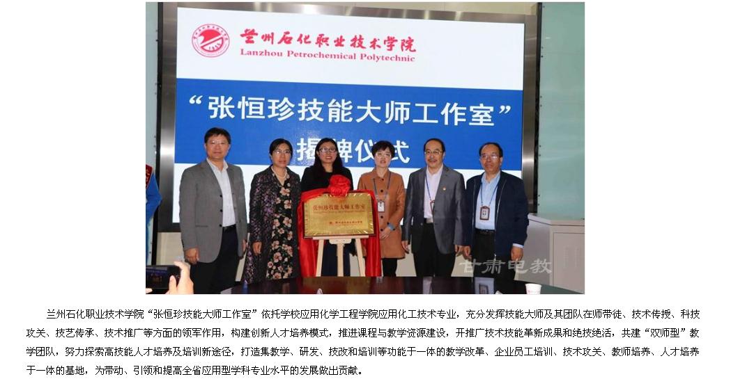 【省教育厅网】“张恒珍技能大师工作室”落户兰州石化职业学院