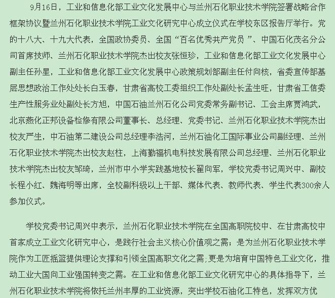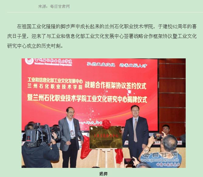 【每日甘肃网】西北首家工业文化研究中心正式落户兰州石化职业技术学院