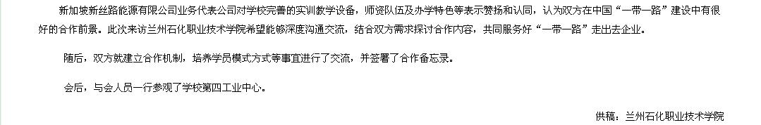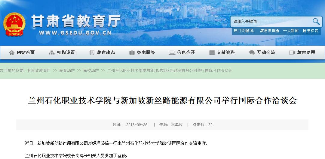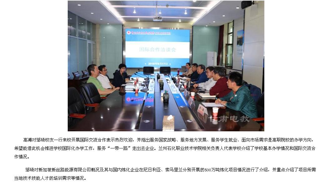 【省教育厅网】兰州石化职业技术学院与新加坡新丝路能源有限公司举行国际合作洽谈会