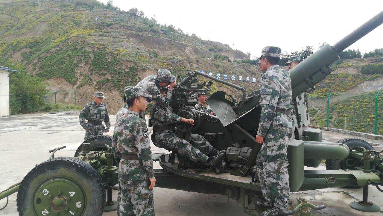 第二天进入实战演练场,参观了训练基地,进行高射炮战术训练,士兵们第一次接触真正的装备,激动而紧张,看着教官们训练有素的战术动作,演示如何射击,真正体会到神圣的感觉,在教官的指导下,士兵们严格按照操作方法体验了一下。