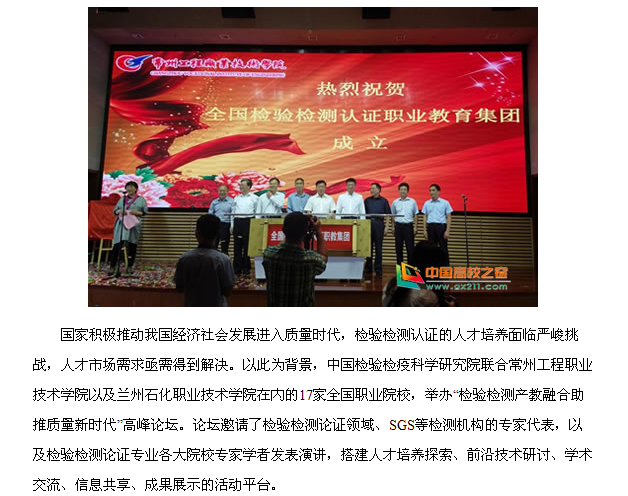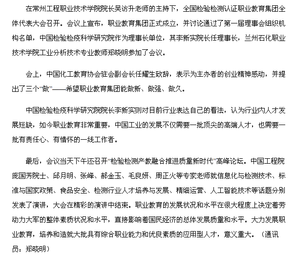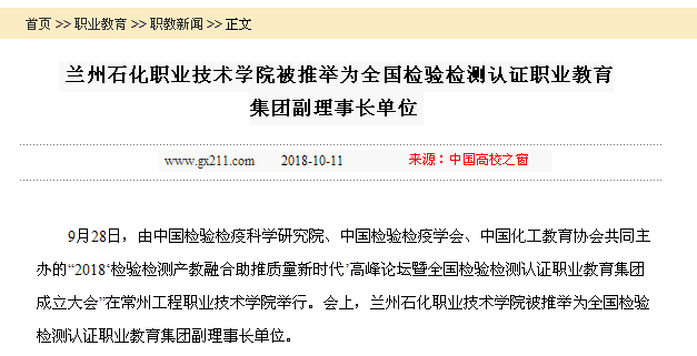 【中国高校之窗】兰州石化职业技术学院被推举为全国检验检测认证职业教育集团副理事长单位