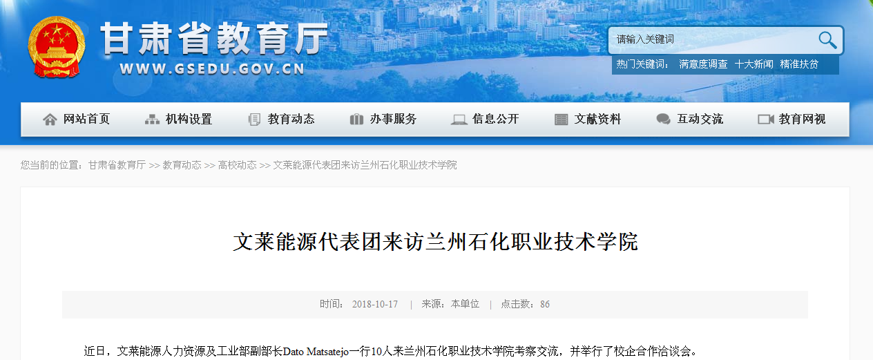 【省教育厅网】文莱能源代表团来访兰州石化职业技术学院