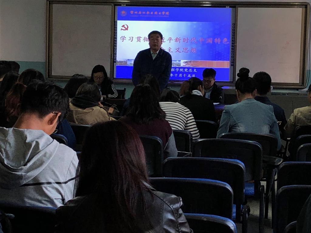 会上,呼小洲带领大家认真学习了习近平新时代中国特色社会主义思想,从思想形成过程、主要内容、重大意义等方面做了详细介绍。同时,呼小洲强调了学校党委党建工作的重点任务,对学院党总支党建工作也提出了具体要求。