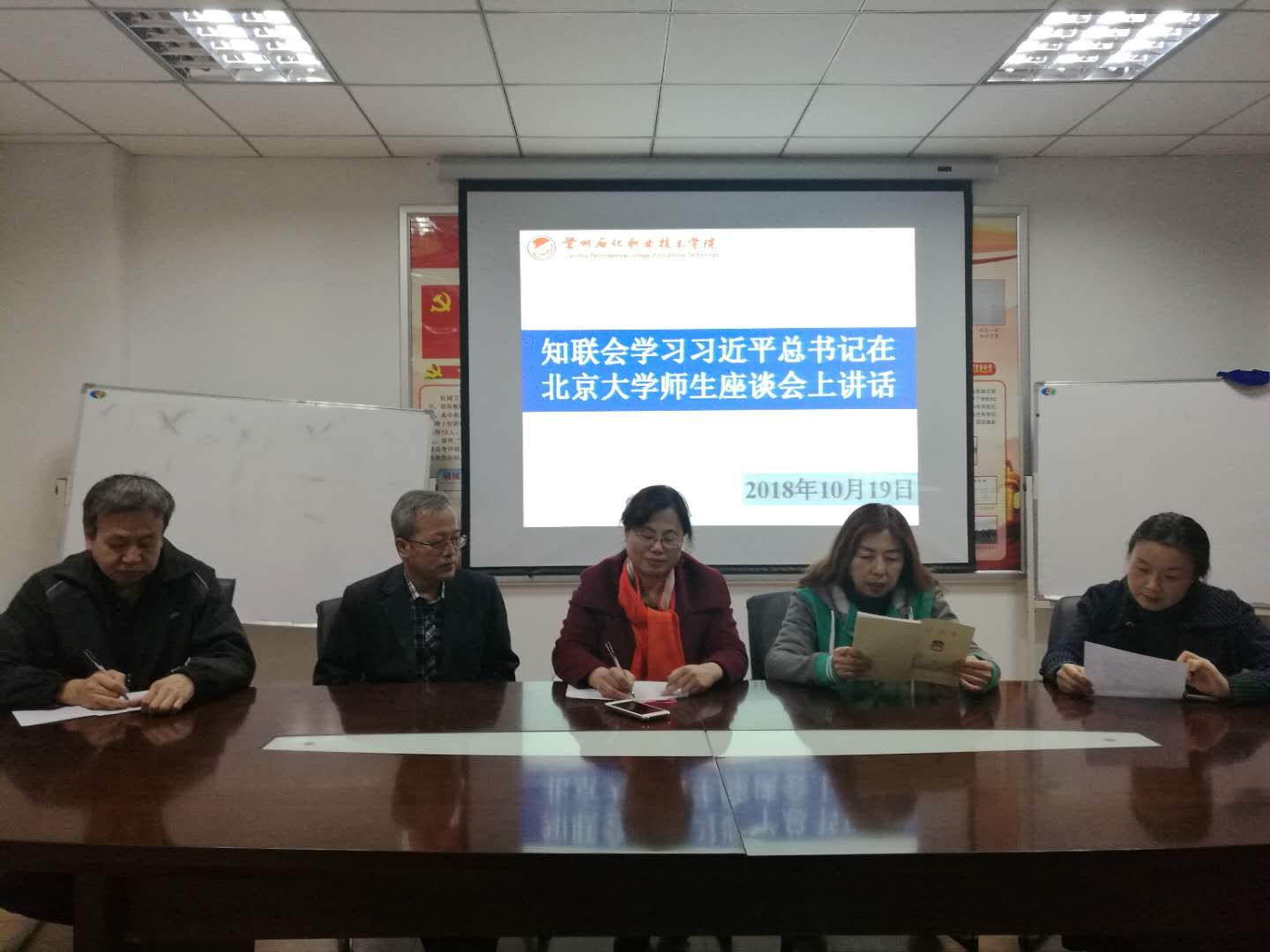 10月19日,我校知联会组织部分会员在教师备课中心开展了“学习习近平总书记在北大师生座谈会上的讲话”的专题学习活动。