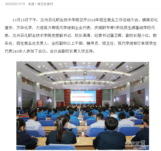 【每日甘肃网】兰州石化职业技术学院召开2018年招生就业工作会议