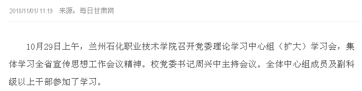 【每日甘肃网】兰州石化职业技术学院校党委理论学习中心组学习全省宣传思想工作会议精神