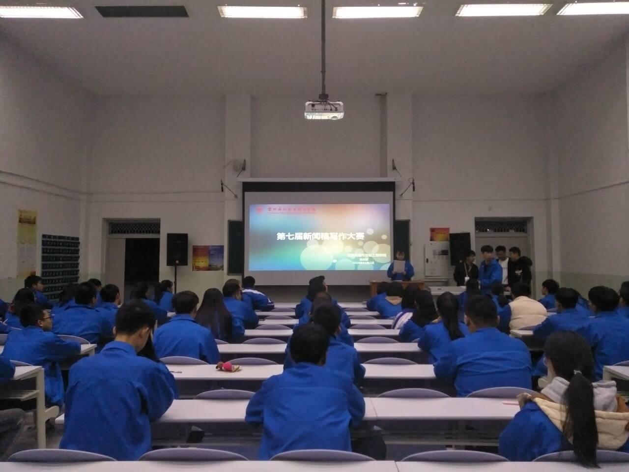 为进一步提高广大同学的写作能力和语言组织表达能力,激发同学写作的潜能,积极营造高品位的校园文化氛围。11月4日,信息处理与控制工程学院在西阶三举行了“第七届”新闻稿写作大赛,18级同学参加了活动。