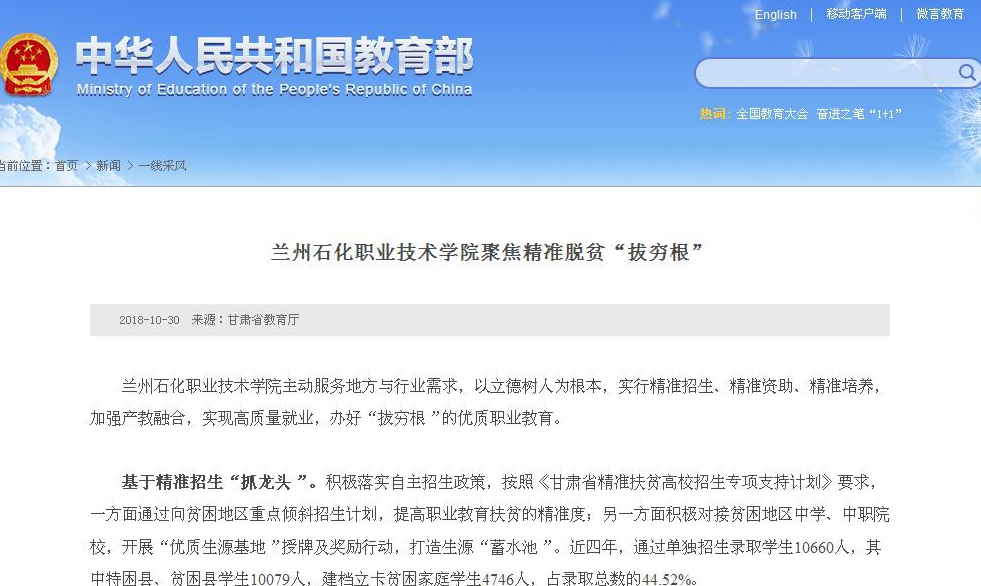 【教育部网】兰州石化职业技术学院聚焦精准脱贫“拔穷根”