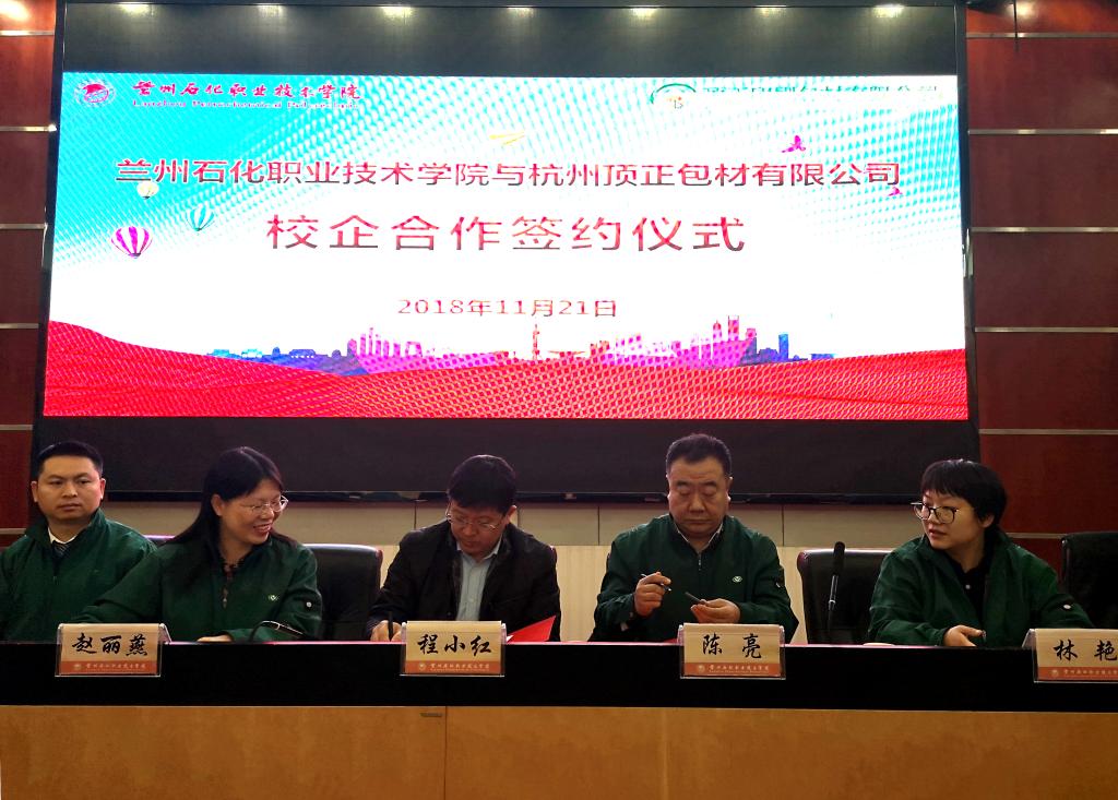 11月21日下午,杭州顶正包材有限公司在多功能报告厅与我校签订了校企合作协议。副校长程小红,杭州顶正包材有限公司领导,学校合作办学处、招生就业处、印刷学院负责人出席了签约仪式,签约仪式由学校合作办学处副处长陈蕾主持。