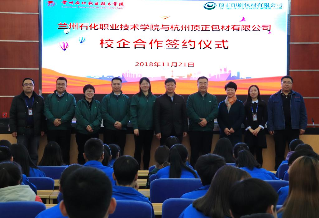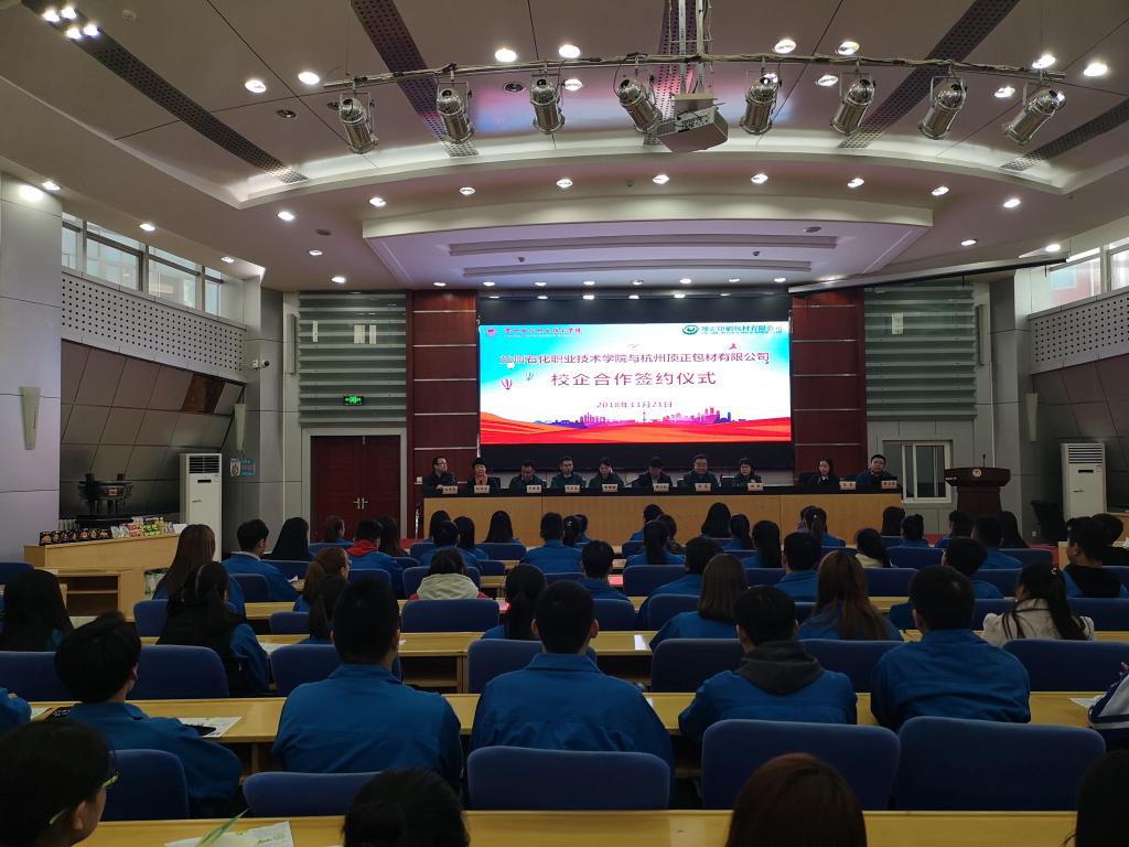 11月21日至22日,顶正事业人力资源部总监赵丽燕、杭州顶正包材有限公司总经理陈亮一行六人来我校考察交流,与我校签订了校企合作协议并进行订单班宣讲。