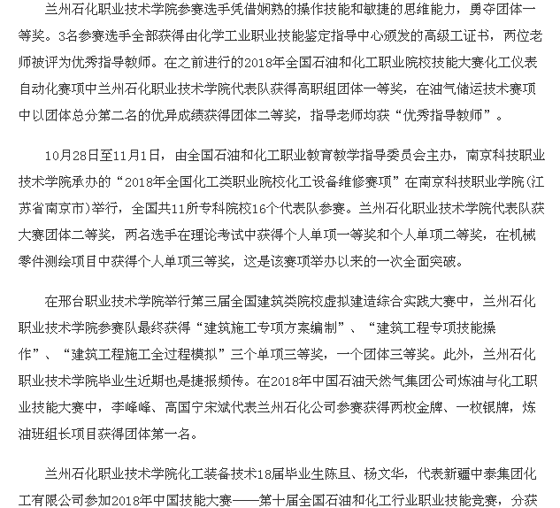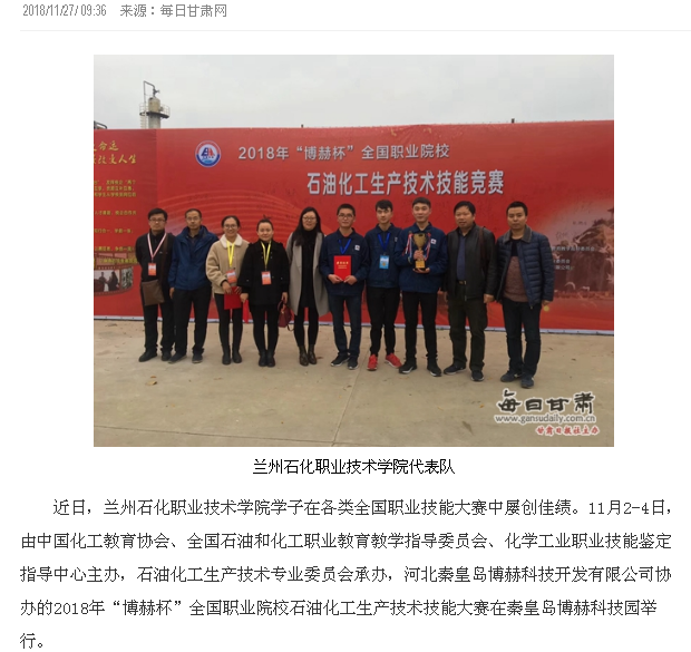 【每日甘肃网】兰州石化职业技术学院学子在全国职业技能大赛中屡创佳绩