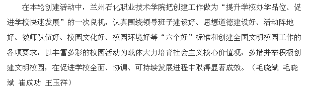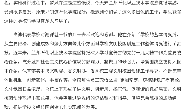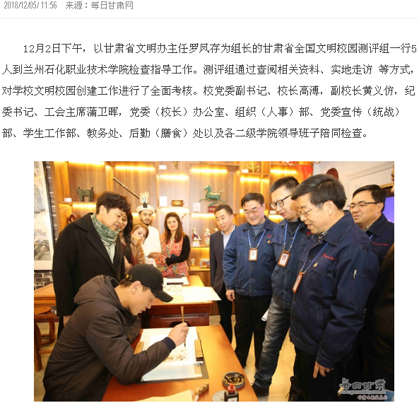 【每日甘肃网】甘肃省全国文明校园测评组考核兰州石化职业技术学院文明校园创建工作
