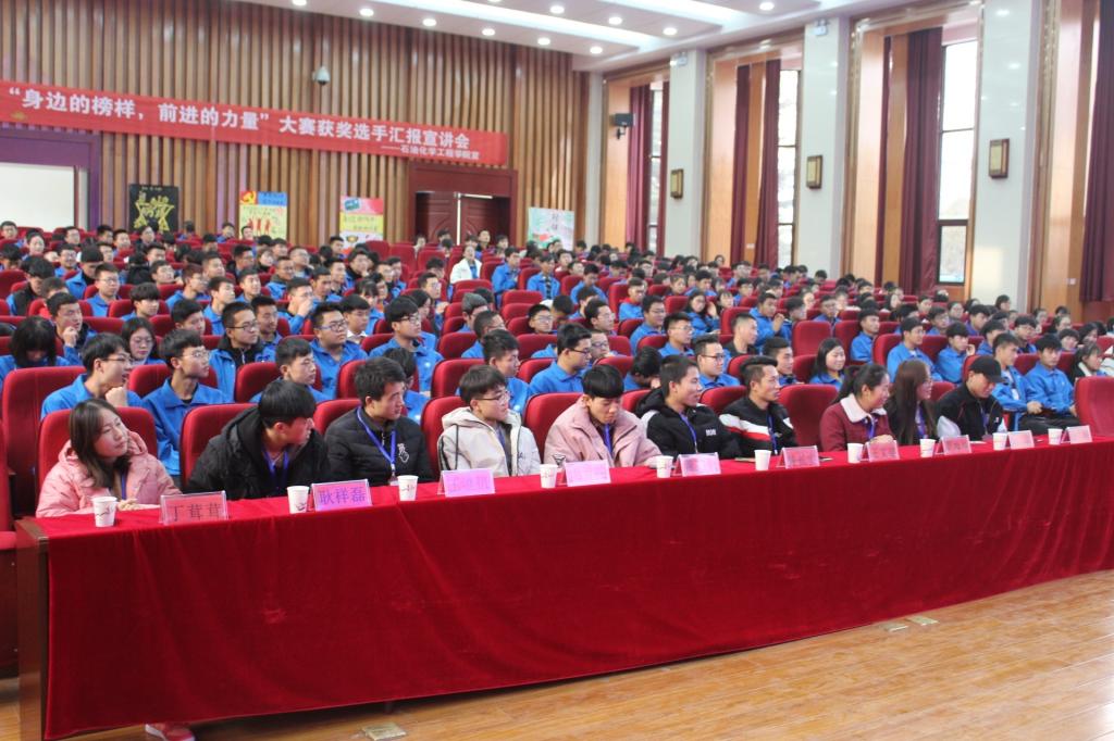 为提高学生学习的积极性、提高道德修养、提升全面素质,石油化学工程学院团学科创部于近日在西区报告厅组织开展“身边的力量,前进的榜样”2018年大赛获奖选手汇报宣讲会,由18年获奖学生进行宣讲,18级学生参与学习。