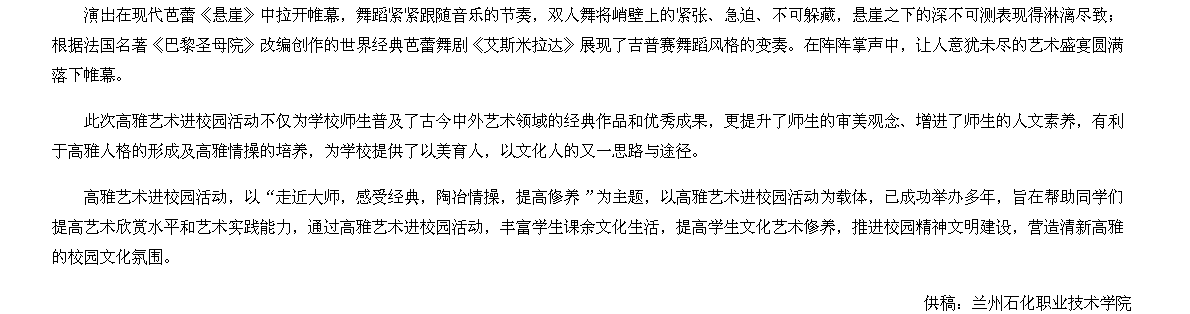 【省教育厅网】辽宁芭蕾舞团专场演出走进兰州石化学院