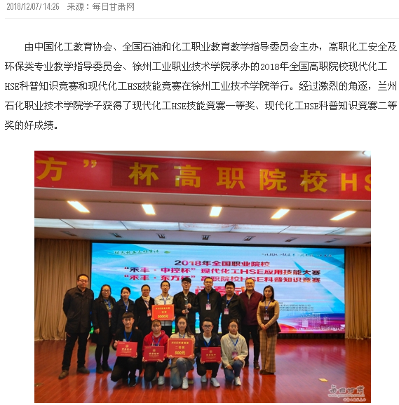 【每日甘肃网】兰州石化职业技术学院学子在全国高职院校现代化工HSE技能竞赛及科普知识竞赛中喜获佳绩