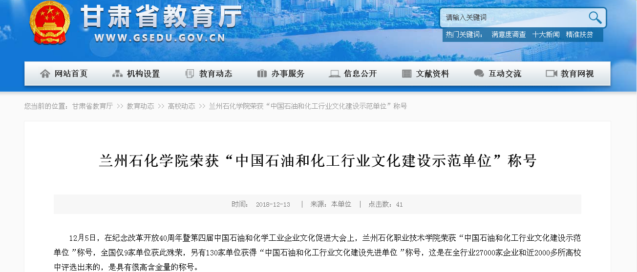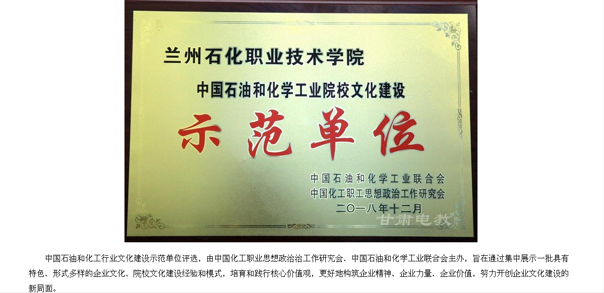 【省教育厅网】兰州石化学院荣获“中国石油和化工行业文化建设示范单位”称号