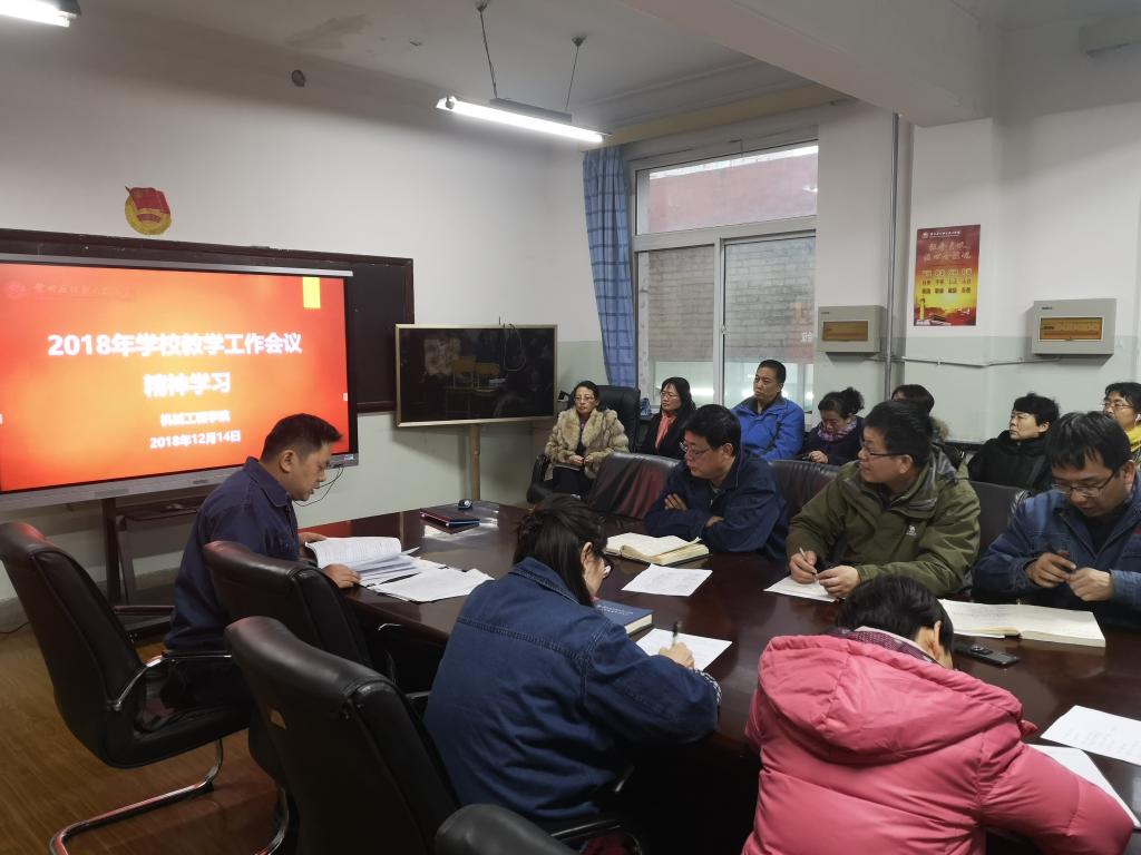 12月14日,机械工程学院召开专题会议,学习2018年学校教学工作会议精神,全院教师参加了大会。
