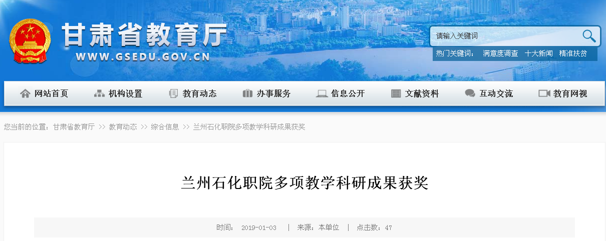 根据甘肃省职业与成人教育协会《关于表彰2018年度职业与成人教育教学科研获奖成果的通知》(甘职成教协[2018]08号)文件,兰州石化职业技术学院组织申报的37项教学科研成果分获特等、一等、二等、三等及优秀各等次奖项,其中周兴中教授主持的教学成果《高职院校课堂育人三分钟工程读本》(教材)获特等奖。据悉,本次全省教学科研成果共评审出2项特等奖。