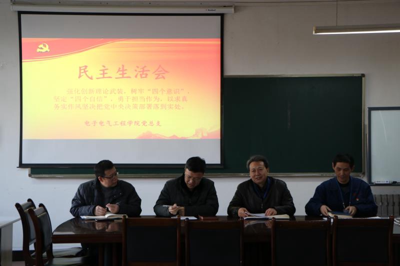 2019年1月3日下午,电子电气工程学院党总支根据学校党委《关于认真开好2018年度组织生活会的通知》精神和要求,召开了2018年度组织生活会,学校党委副书记黄义仿参加组织生活会并讲话,学院领导班子成员和全体党员参加了组织生活会。