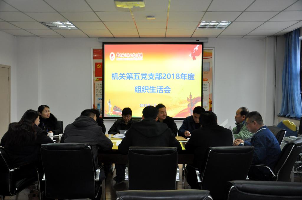1月4日上午,根据学校党委部署,机关第五党支部在教师研修室召开2018年度组织生活会,支部全体党员参加了会议,会议由党支部书记车泽伟主持。