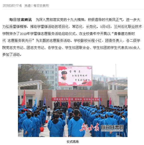 【每日甘肃网】兰州石化职业技术学院举办2019年学雷锋志愿服务活动启动仪式