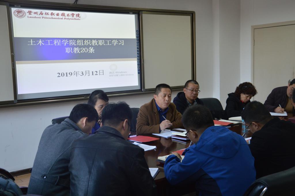 3月12日,土木工程学院组织教职工在主教楼218学习职教20条,学习活动由土木工程学院院长主持,土木工程学院全院教职工参加了此次学习活动。