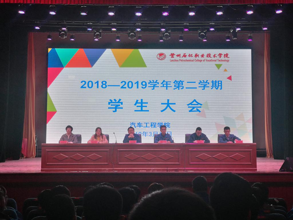 新学期、新征程、新气象。3月12日,汽车工程学院召开2018-2019学年第二学期学生大会。会议由党总支书记张文和主持,院长孙国君、副院长张旭燕、院长助理张维军、办公室主任、辅导员、班主任以及2017、2018级学生参加了此次大会。