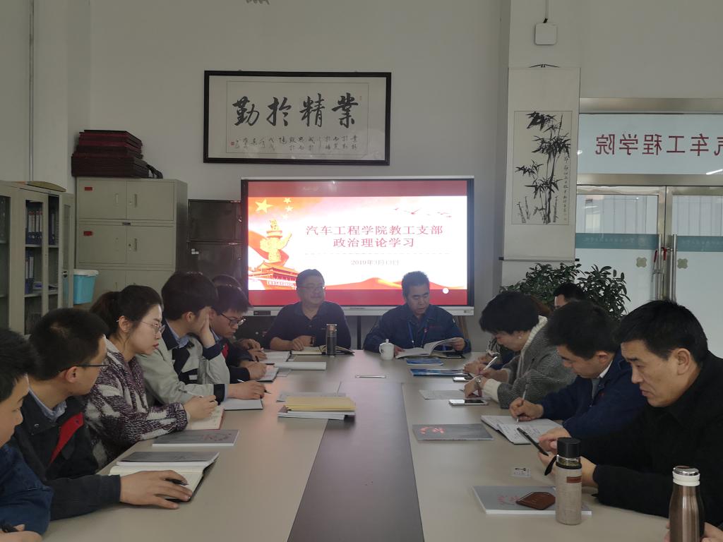 为更好地完成学校2019年的重点工作,推动学院进一步发展,汽车工程学院于3月13日召开全院教职工会议,集中进行教职工政治理论学习,并学习传达了我校第六届三次教职工代表大会暨第五届三次工会会员代表大会会议精神。会议由院党总支书记张文和主持。