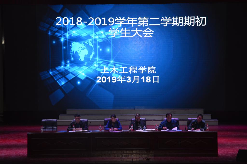 3月18日晚,土木工程学院在东区礼堂举办了2018-2019学年第二学期期初学生大会。土木工程学院党总支书记、党总支副书记、团总支书记、辅导员参加本次大会,以及土木工程学院大一、大二全体学生参加本次大会。