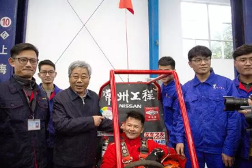 徐念峰在发言介绍了中国汽车工程学会巴哈大赛的成长历程,其1976年起源于美国,2015年由中国汽车工程学会引进并创立,四年来已经成功举办了5场比赛,参赛车队数量逐年递增,2019年报名参赛车队总数也突破了100支。目前,在开设汽车专业的本科院校、职业院校,组车队、造巴哈和跑比赛已经蔚然成风。巴哈热潮也引发了大家对“工程实践教学”的关注和思考,更引起了社会各界的广泛关注。3月21日,教育部党组书记、部长陈宝生视察常州时,教育部党组书记、部长陈宝生视察常州科教城时,当得知常州工程职业技术学院车队是全国第一批次(5月份)前往美国加州参加国际性巴哈大赛的高职院校时,他拍着赛车手的肩膀,揪了揪他的耳朵,殷殷寄语,为参赛队员鼓劲壮行。