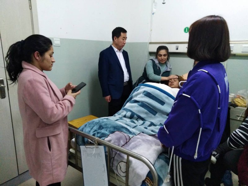 我校巴基斯坦留学生苏蜜(中文名字),与因病住院检查治疗,国际教育学院党总支副书记赵常学,班主任及班级学生代表赴医院进行看望。