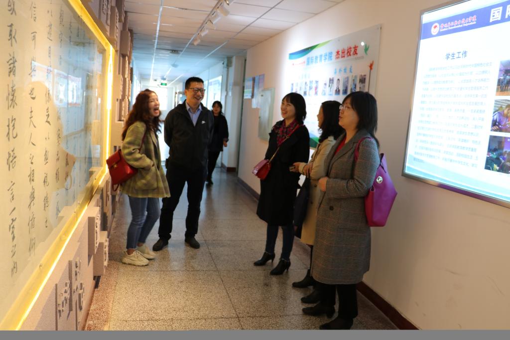 考察组参观了国际教育学院传统文化体验室、同声传译实训室,详细了解了实训基地建设方案。国际教育学院院长王鹏介绍了我校近年来我校公共英语教学改革、专业建设、企业员工培训、留学生教育等情况,双方就高校未来英语教学的发展前景与方向进行了讨论,会议气氛愉快融洽,通过交流加深了对各自办学特色的了解。