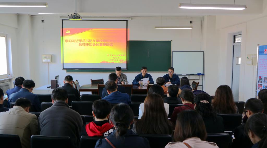 4月16日在电子电气工程学院院办会议室组织全体教师进行政治理论学习。会议由电子电气工程学院党总支书记张军、院长马应魁、办公室副主任陈鹏以及电子电气工程学院全体教师参加。