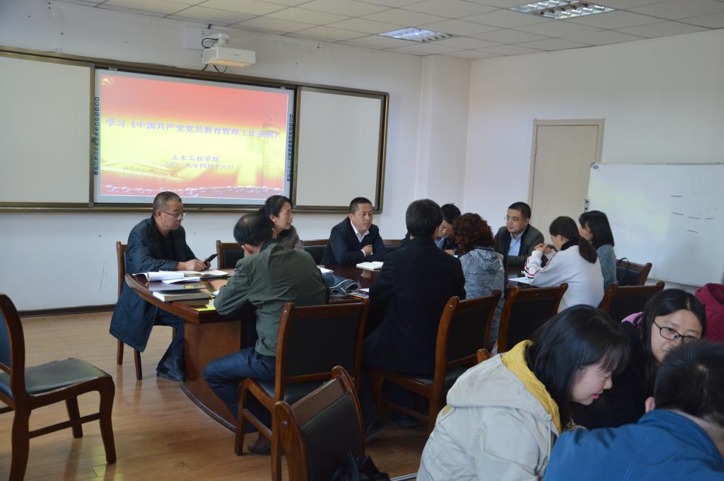 4月16日,土木工程学院全体教职工在东主教209集中学习《中国共产党党员教育管理工作条例》,土木工程学院全体教职工参加本次会议。本次会议由党总支书记主持。