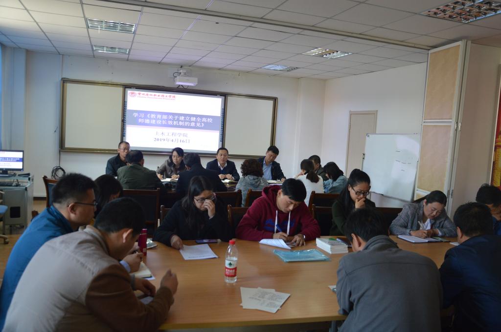 4月16日下午土木工程学院组织全体教工党员在东主教209学习《教育部关于建立健全高校师德建设长效机制的意见》。