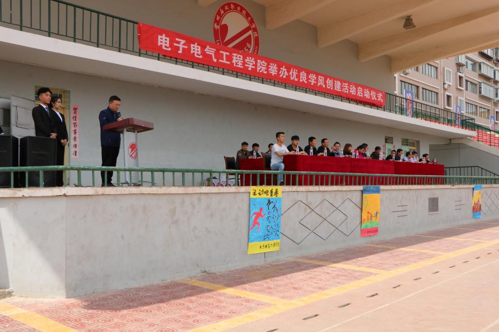 4月20日下午,电子电气工程学院在操场举办优良学风创建活动启动仪式。电子电气工程学院院长马应魁、党总支书记张军、办公室副主任陈鹏、团总支书记、全体辅导员、班主任、18级全体学生共计750余人参加了大会。