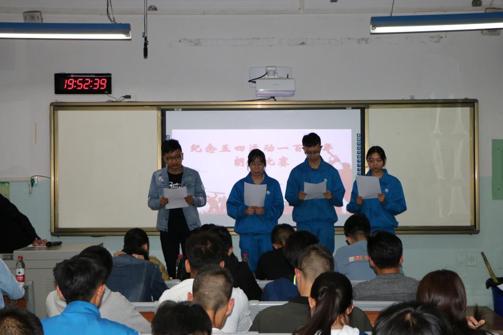 为纪念五四运动100周年,进一步弘扬爱国、进步、民主、科学的五四精神。4月22日晚,机械工程学院在机电楼308室开展“纪念五四运动一百周年”朗诵比赛,近50余名同学参加了比赛。