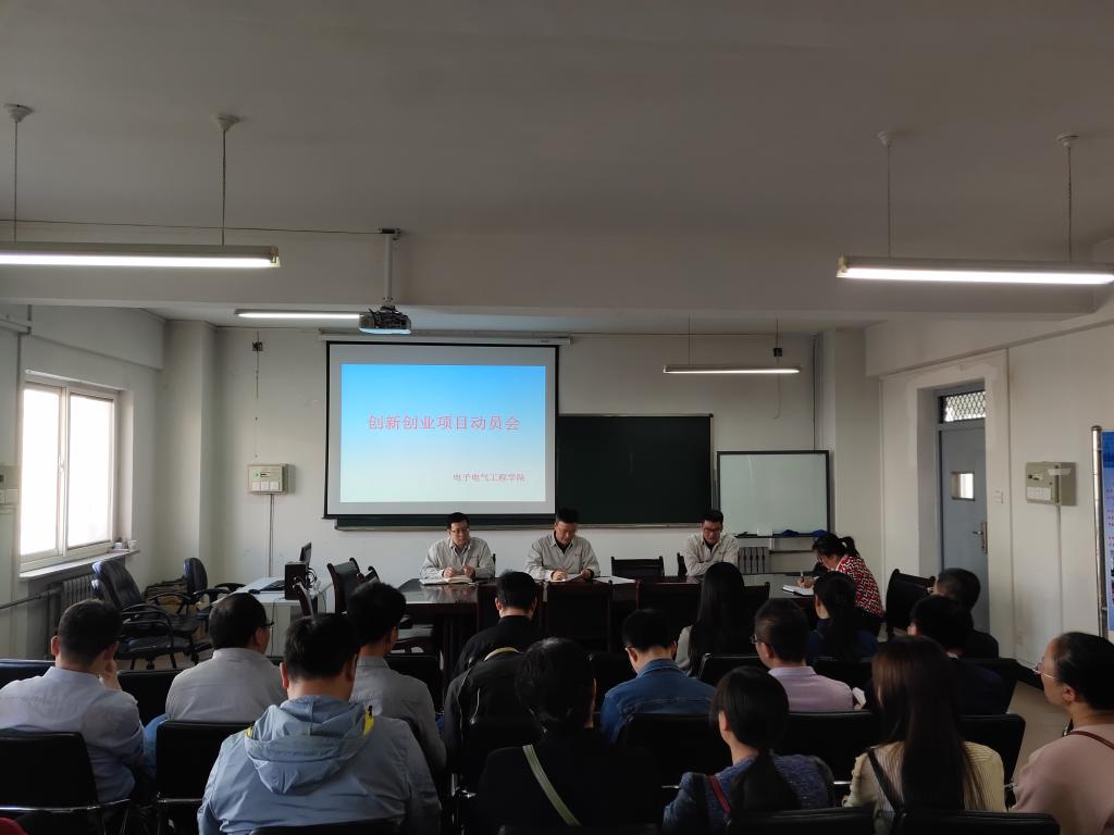 为进一步推动和落实第五届中国“互联网+”大学生创新创业大赛活动和甘肃省创新创业训练计划立项的申报工作,电子电气工程学院召开创新创业动员大会。此次大会由院长马应魁主持,副院长陈宏希、办公室副主任陈鹏以及所有青年教师参加本次动员大会。