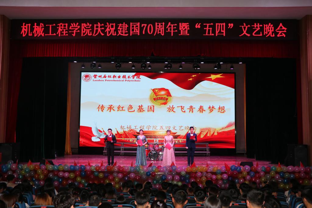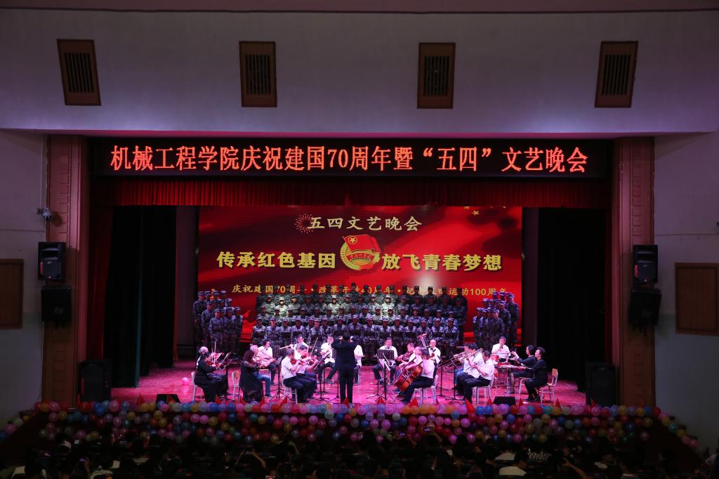 4月26日晚,机械工程学院“传承红色基因,放飞青春梦想”庆祝新中国成立70周年暨纪念五四运动一百周年文艺晚会在东区礼堂隆重举办,甘预师第一团三营营长唐辉、作训股长王保锦、机械工程学院领导以及全体学生共同观看了本次晚会。