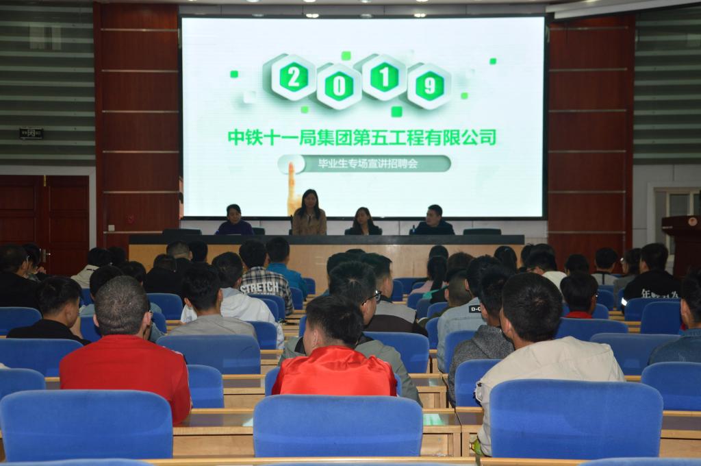 5月7日上午,中铁十一局集团第五工程有限公司一行三人来我校遴选2020届毕业生,在东区多功能报告厅举行专场招聘会。