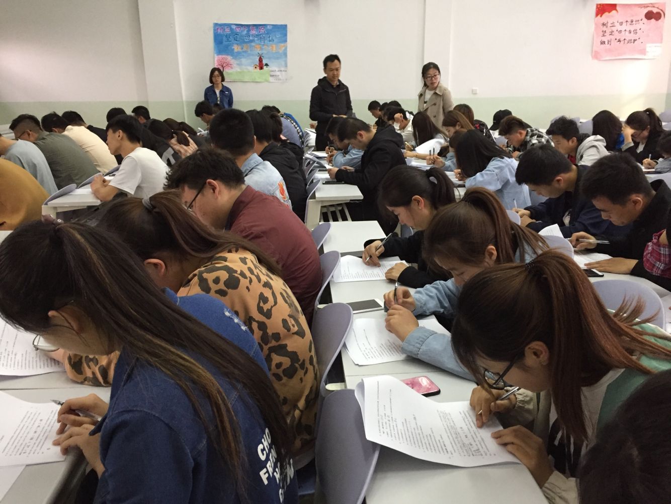 招聘会上兰州乐享未来•青少年编程培训学校负责人通过PPT的形式向同学们介绍了他们的培训教育方式,最后,对现场有意向的同学进行了初次笔试。