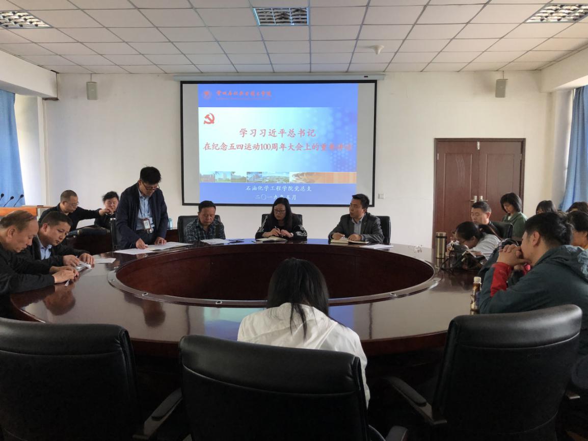 5月13日下午,石油化学工程学院于石化楼会议室组织全体教师学习习近平总书记在纪念五四运动100周年大会上的重要讲话精神,学习会议由石化院院长助理赵立祥主持。