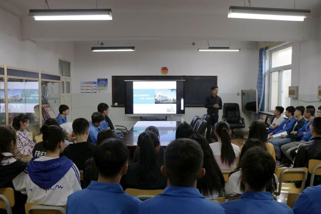 宣讲会现场,企业负责人通过PPT演示介绍了公司背景、企业文化,企业员工培养模式、企业目前的发展状况及发展前景等。随后,企业负责人在薪酬福利、员工待遇等方面作了详细讲解,现场同学对公司也有了更加深入的了解。企业负责人与同学们互动交流,宣讲会在轻松的氛围下进行。
