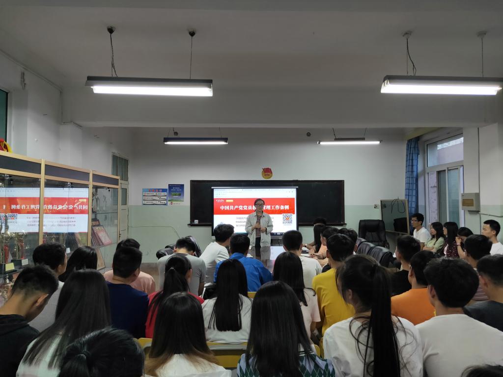 5月24日,机械工程学院学生党支部在机电楼二楼展览室开展专题学习《中国共产党党员教育管理工作条例》,由机械工程学院办公室主任王小芬主讲,17、18级入党积极分子、发展对象、预备党员参加了专题学习。