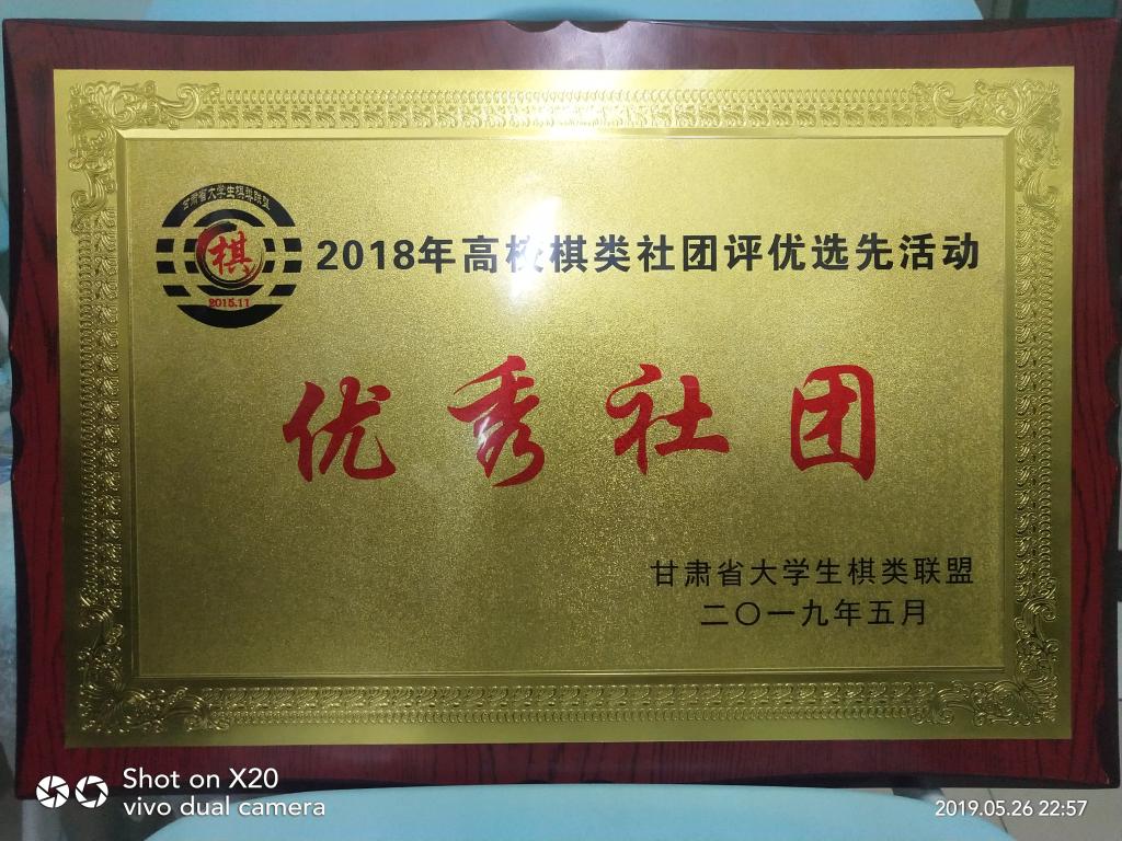 5月25日,甘肃省大学生棋类联盟2018年度评优活动与颁奖典礼在兰州交通大学成功举行。在活动中,我校电子电气工程学院弈风棋牌协会通过第八届甲级联赛的网络投票,以优异的成绩进入前六强,获得2018年度高校优秀社团奖项。