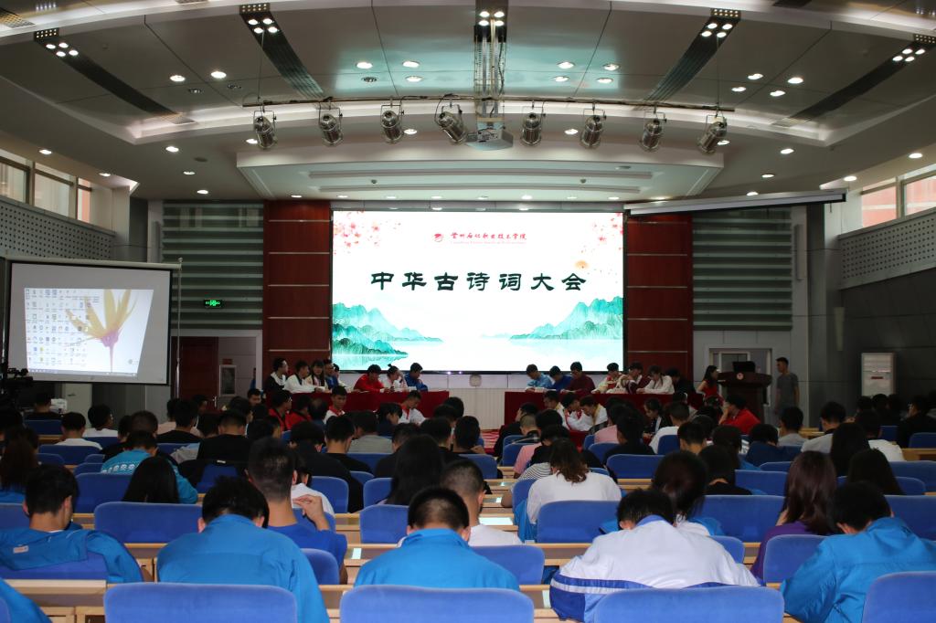 6月2日下午,由校团委主办的“中华古诗词大会”决赛在东区报告厅如期举行。校团委老师、各二级学院团总支书记、学生会、学生社团联合会学生干部以及来自十个学院的200名师生代表共同观看了这场诗词盛会。
