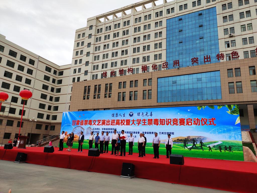 6月20日,甘肃省禁毒委员会在兰州文理学院隆重举行以“健康人生、绿色无毒”为主题的“甘肃省禁毒文艺演出进高校暨大学生禁毒知识竞赛启动仪式”。目的是以喜闻乐见的形式和丰富多彩的活动,深入推进毒品预防宣传教育,推广普及禁毒知识,不断提升人民群众特别是广大青年大学生的禁毒防毒意识,全力推进我省新时代禁毒人民战争向纵深发展。省政府副秘书长、省禁毒委副主任唐志峰出席启动仪式并讲话,省禁毒委副主任、省公安厅副厅长王立朝主持启动仪式。省禁毒委副主任、省委政法委副书记孙燕飞,省禁毒委副主任、省委宣传部副部长康清,省禁毒委副主任、省司法厅巡视员牛兴全,省禁毒委副主任、省林业和草原局副局长郑克贤以及省教育厅、省民政厅、省交通运输厅、省文化旅游厅、省卫生健康委、省市场监管局、省广电局、省邮政管理局、省总工会、团省委、省妇联等单位和部门的负责同志出席启动仪式。我校学生同来自全市25所高校的1800余名师生共同参加了启动仪式。